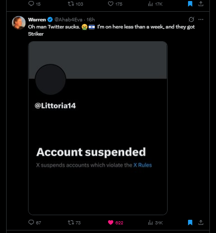 - Last night I could not live stream on X, nor upload any video despite no technical issues elsewhere. My account was locked down today for allegedly violating content policies over my header image, which had been flagged en masse by bots or paid shitters (no real user complaints).