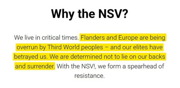 “Flanders and Europe are being overrun by Third World peoples – and our elites have betrayed us. We are determined not to lie on our backs and surrender.”