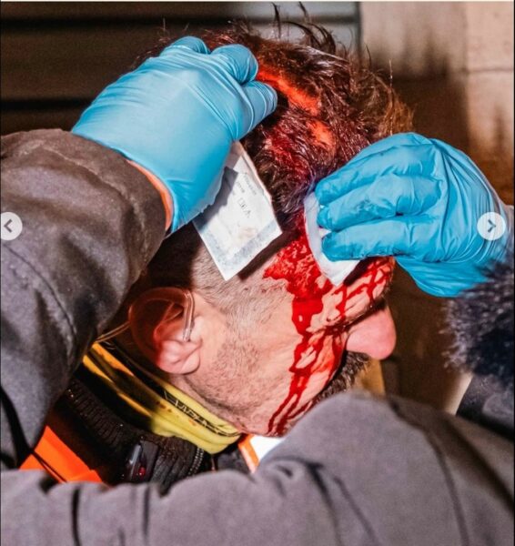 Some got through the police lines and injured one of the yellow-vested marshals guiding us.