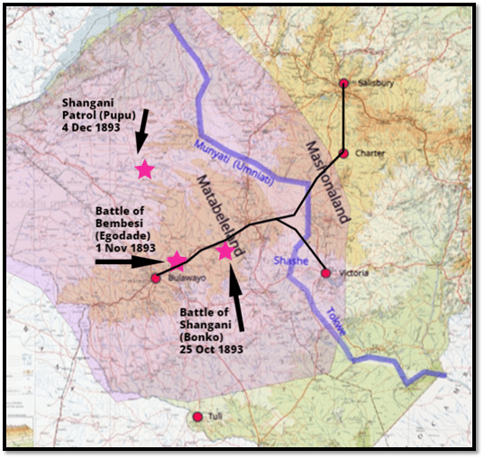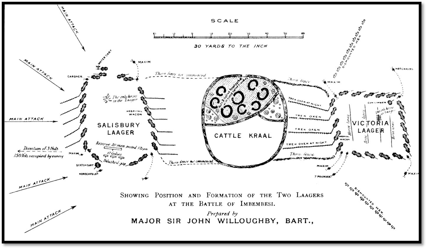 The Rhodesians kept pushing on, and by 1 November, they were merely 20 miles from Bulawayo. Minor skirmishes took place throughout the morning, but regardless, the Rhodesians set up camp in a rather laid back fashion. Security was lax and the laager was imprudently placed with lots of dead ground and no nearby water sources. Everything looked set up for a massacre at the hands of the 8,000 Matabele warriors who were creeping around the nearby bush.