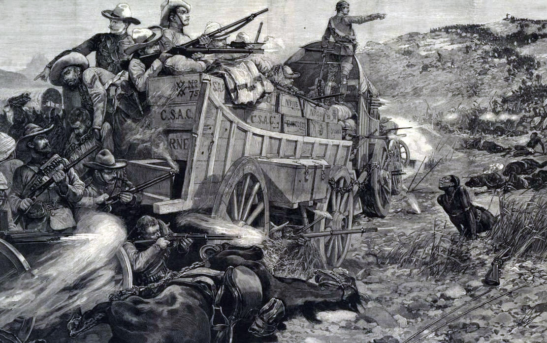 Just north of the Salisbury laager were two pickets named Trooper White and Trooper Thompson, who seemed to be more interested in chatting away than actually keeping watch. This was not the British army and the level of discipline amongst the troopers reflected that. Regardless, out of nowhere, thousands of Matabele warriors suddenly surged out of the bush and were on White and Thompson before the duo even knew what was happening. Thompson tried to bolt up a tree but was dragged down and butchered. White somehow got onto his horse, fell off it again, and then managed to run towards the laager with thousands of Matabele warriors hot on his heels. For years to come, this place would be known as ‘White’s Run’. The Battle of Bembesi had begun.